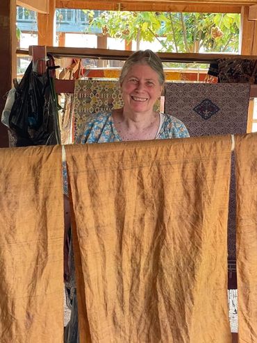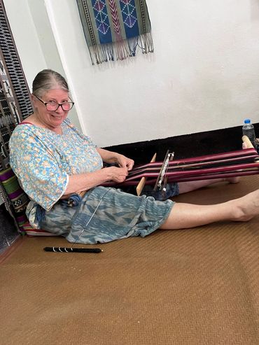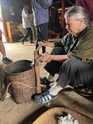 Janet made friends in a tiny village in Laos and has plans to continue to study the Lao styles of weaving. She also has plans to help this village to upgrade their tourist operations where they teach weaving, dyeing, spinning, basket making and paper making.